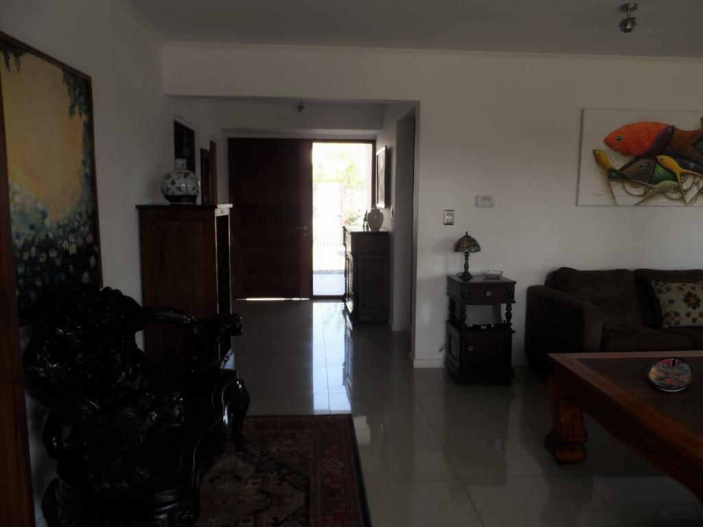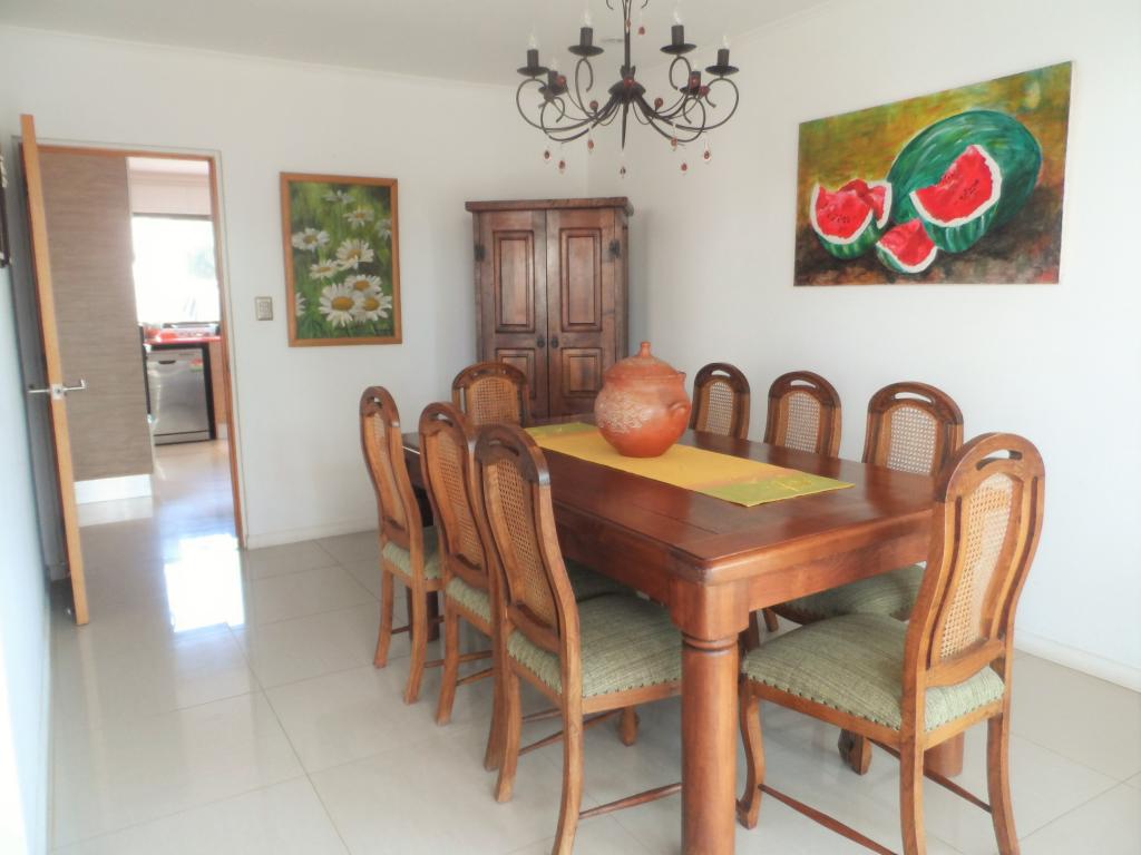 Descripción: VENTA POR VIAJE!! Estupenda casa de estilo moderno, ubicada en condominio sector de Chamisero, Seguridad las 24 hrs. del dÃa. Excelente conectividad radial Nor oriente, av. De Valle, Carretera San Martin, cerca de colegios y a pasos de los Colegios Lincoln y Dunalastair, servicios, supermercados. Primer piso: Hall de distribución, living- comedor juntos, baño visita, dormitorio principal en suite, tina hidromasaje. Cocina amoblada con campana, encimera, horno eléctrico, comedor de diario. Dormitorio de servicio y baño. Con una gran logia cerrada. Segundo piso: Tres dormitorios, uno de ellos en suite, un baño que comparten los otros dos dormitorios, cómoda y luminosa sala de estar con terraza. Exterior: Terraza techada a lo largo de todo el living y comedor, precioso jardÃn formando con macizos arbustivos, riego automático, gran piscina con reja. Otros: Únicos dueños Año de construcción 2012 Pisos: porcelanato Ventanas: termo panel Cocina: cubierta de granito y piso porcelanato Baños: cubierta silestone y piso de porcelanato. Calefacción: losa radiante a pellet, paneles solares.